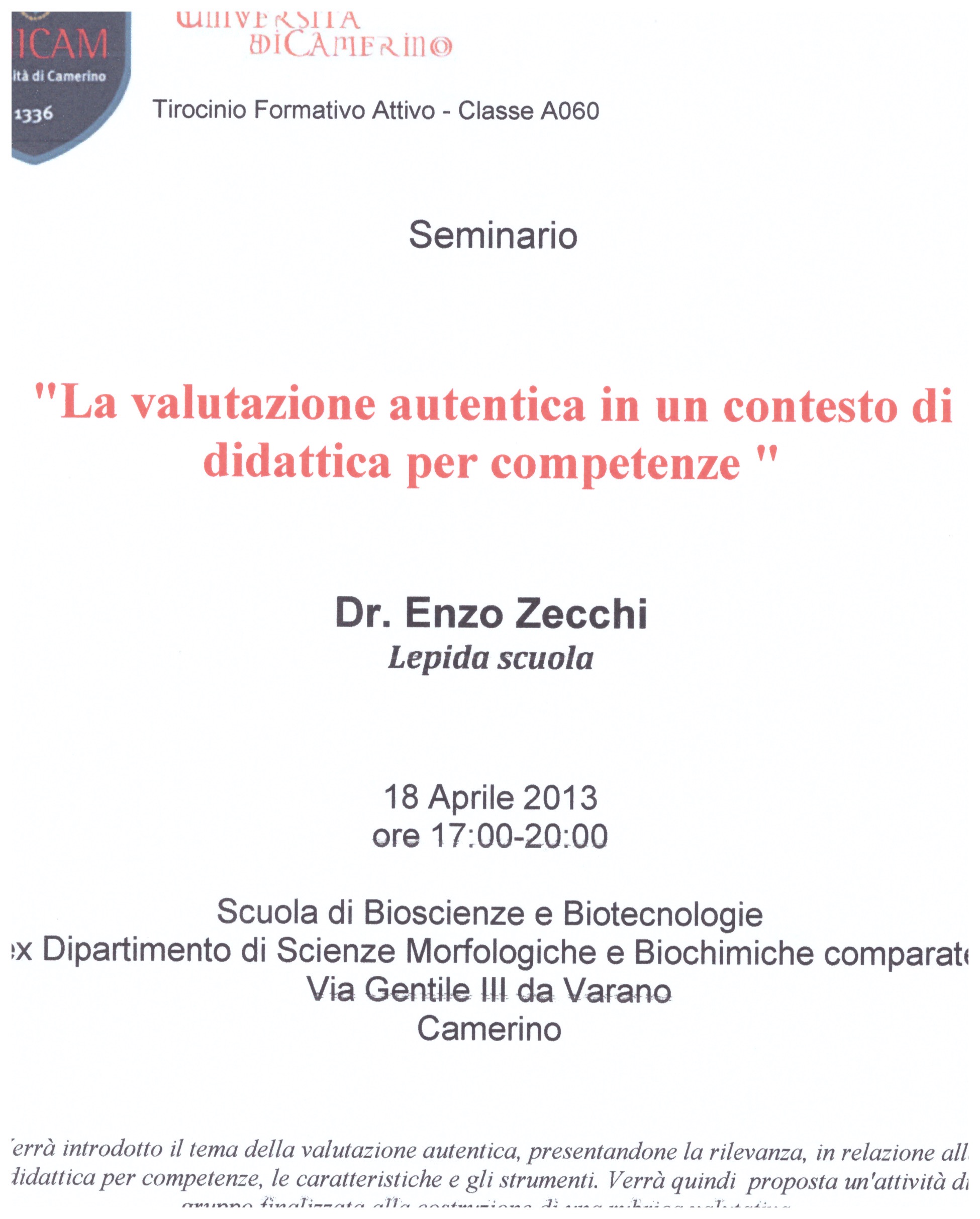 Oggi all’Università di Camerino ho tenuto un seminario sulla valutazione autentica. Gruppo di Docenti davvero interessati. Con alcuni siamo rimasti oltre le 20.